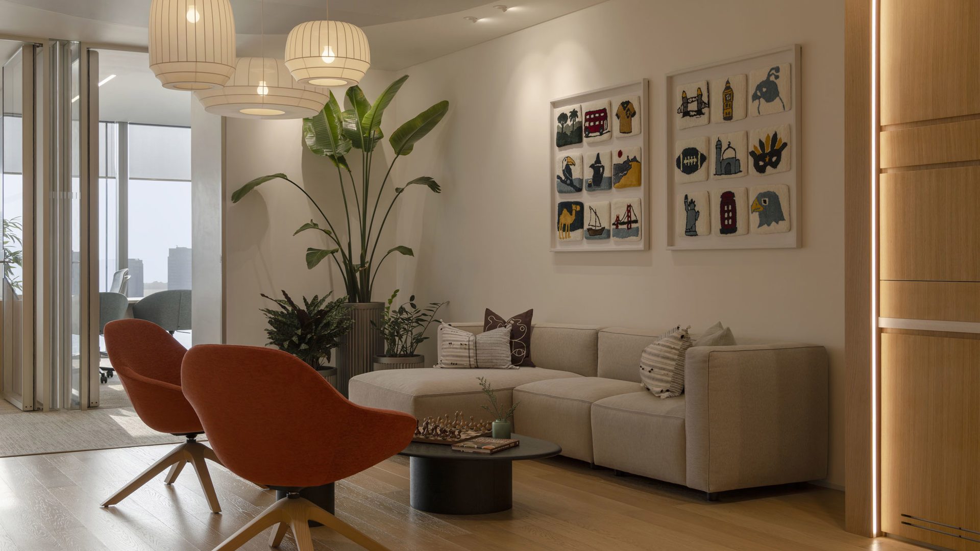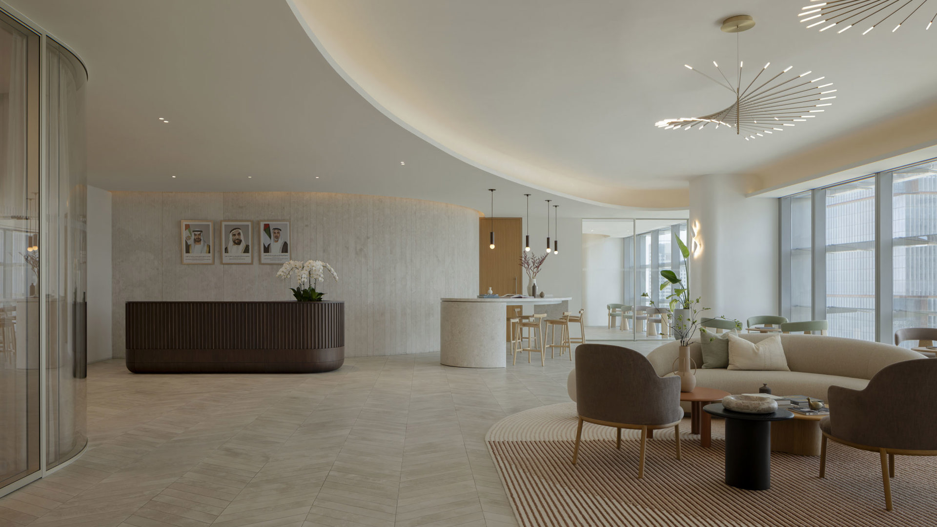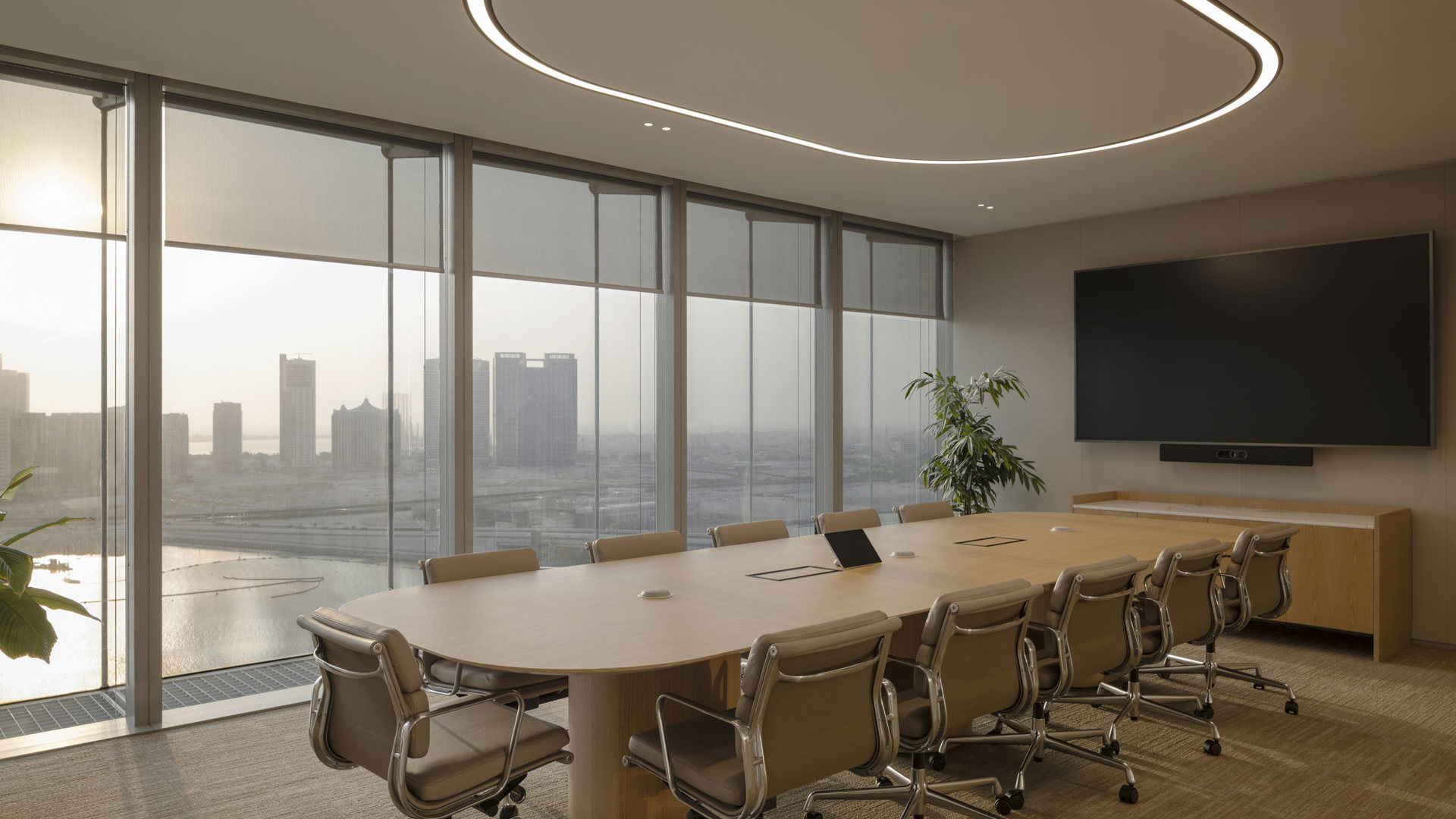 Situated in a premium high-rise, the project offers expansive city and Gulf views while rethinking what a contemporary workplace in the Middle East can be. In reimagining the Abu Dhabi headquarters for a global financial services firm, subtle references to Middle Eastern craft traditions and palettes root the design in its local context while maintaining an international sophistication.