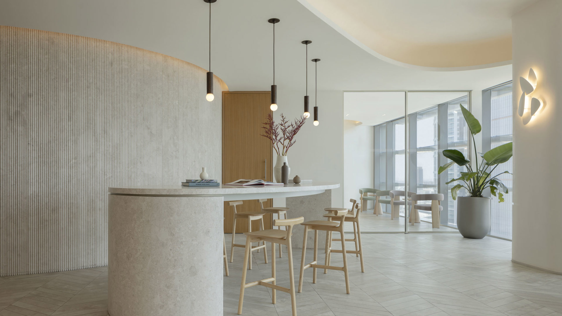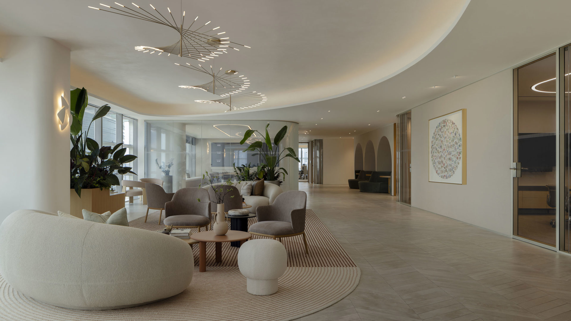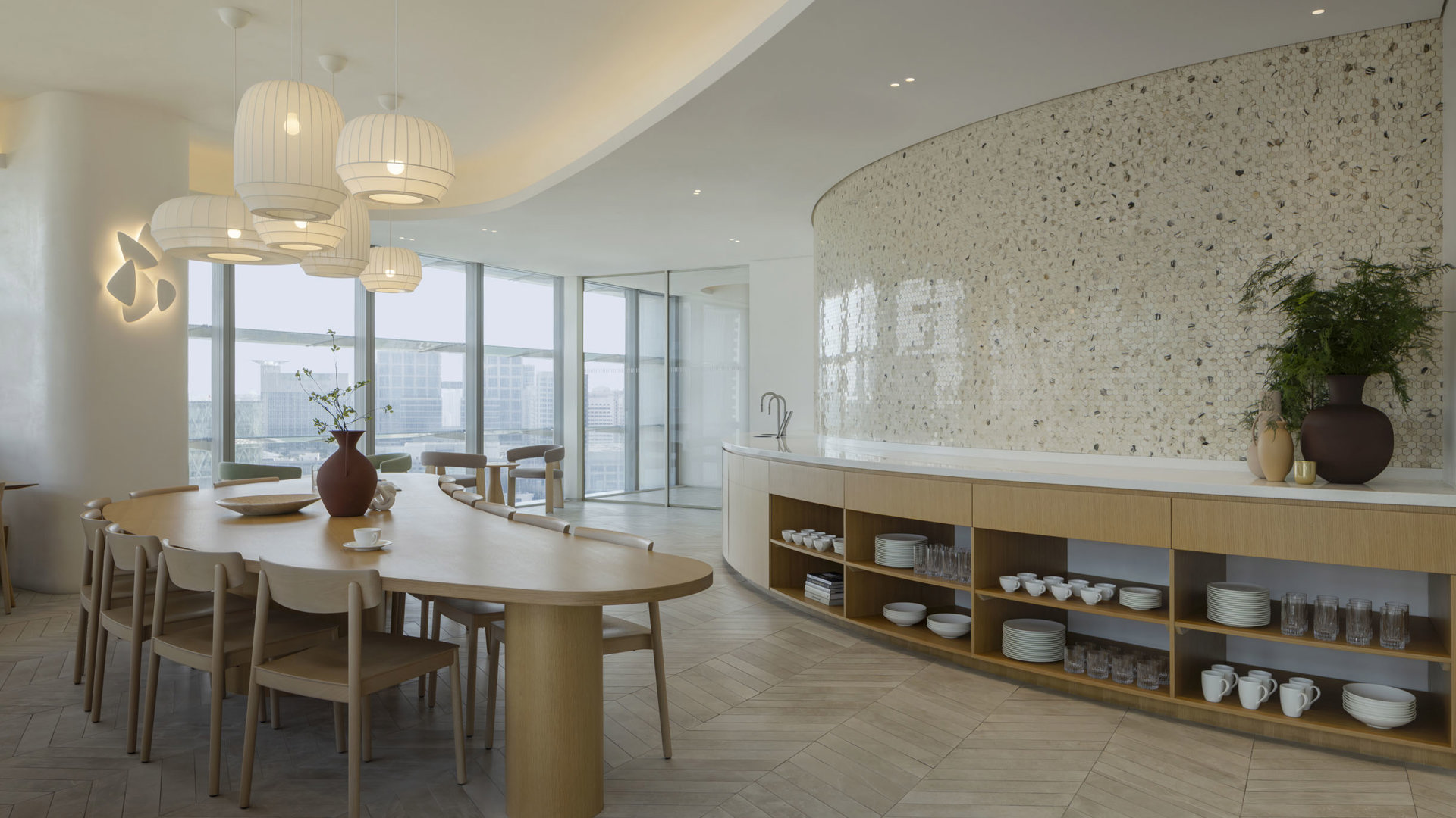Situated in a premium high-rise, the project offers expansive city and Gulf views while rethinking what a contemporary workplace in the Middle East can be. In reimagining the Abu Dhabi headquarters for a global financial services firm, subtle references to Middle Eastern craft traditions and palettes root the design in its local context while maintaining an international sophistication.