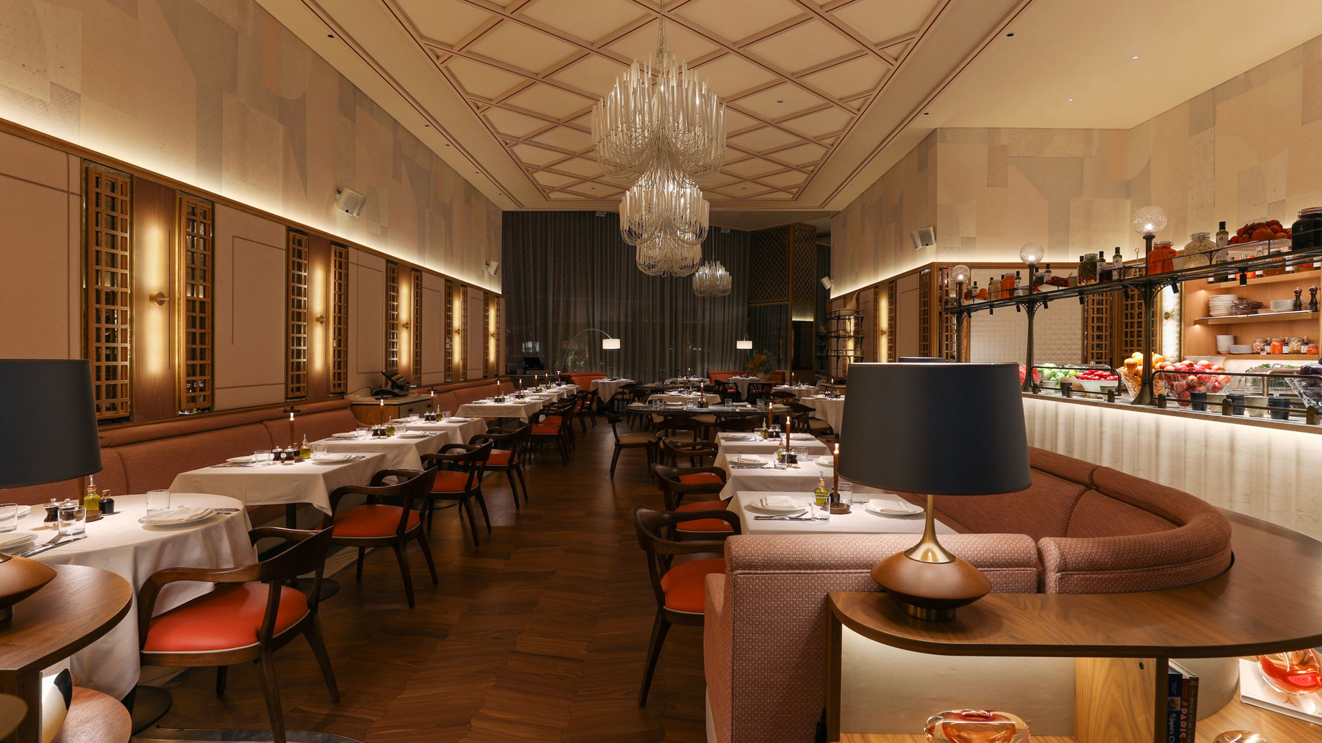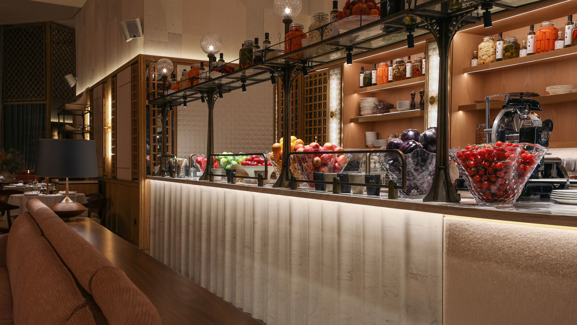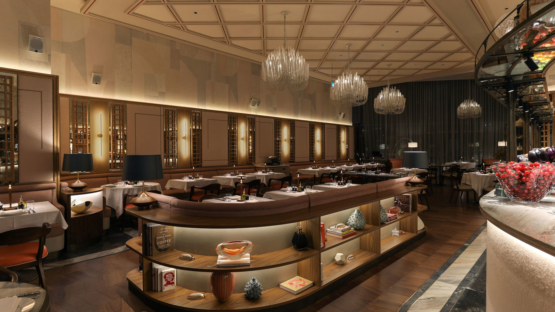 The design of the restaurant by interior design firm Sagrada takes its inspiration from the Jardin Du Palais, a Parisian garden which showcases French, British and African plants. Nature is a focal point of the venue’s décor, from the elegant botanical conservatory to the breath-taking views of the Dubai Fountain.
