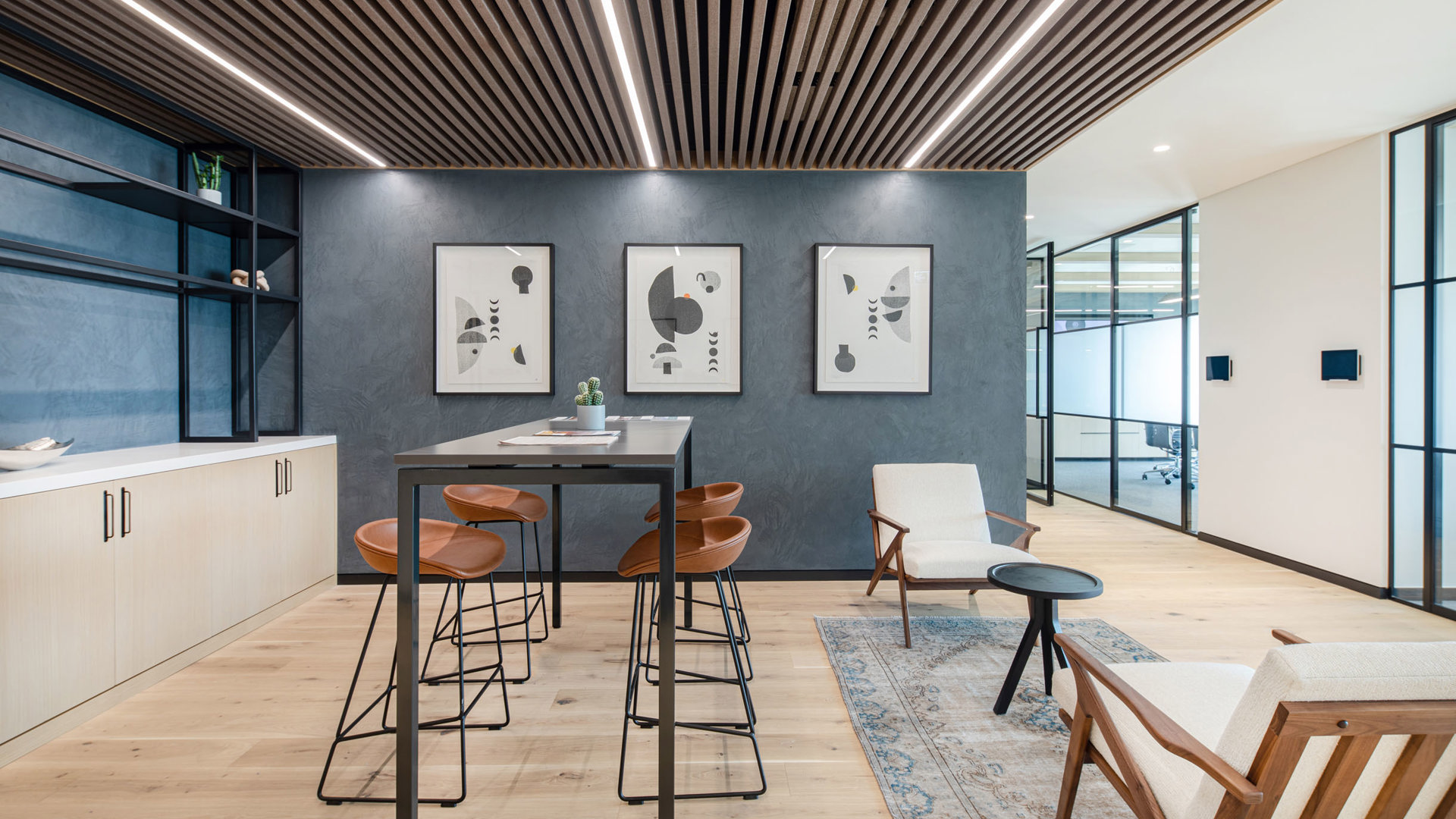 Watson Fairly Williams' Dubai office, a global law firm, is located in the iconic Index Tower in the Dubai Financial District. The lighting design for the space emphasises the need for adequate lighting levels and uniformity for legal work, along with intense task lighting, clear visual conditions for desks, and meeting rooms. The Lighting is balanced between ambient and accent to reduce glare and shadows. The lighting contributes to the overall space, which feels light, fresh, and clean and fitting with the corporate aesthetic typical to any legal office.